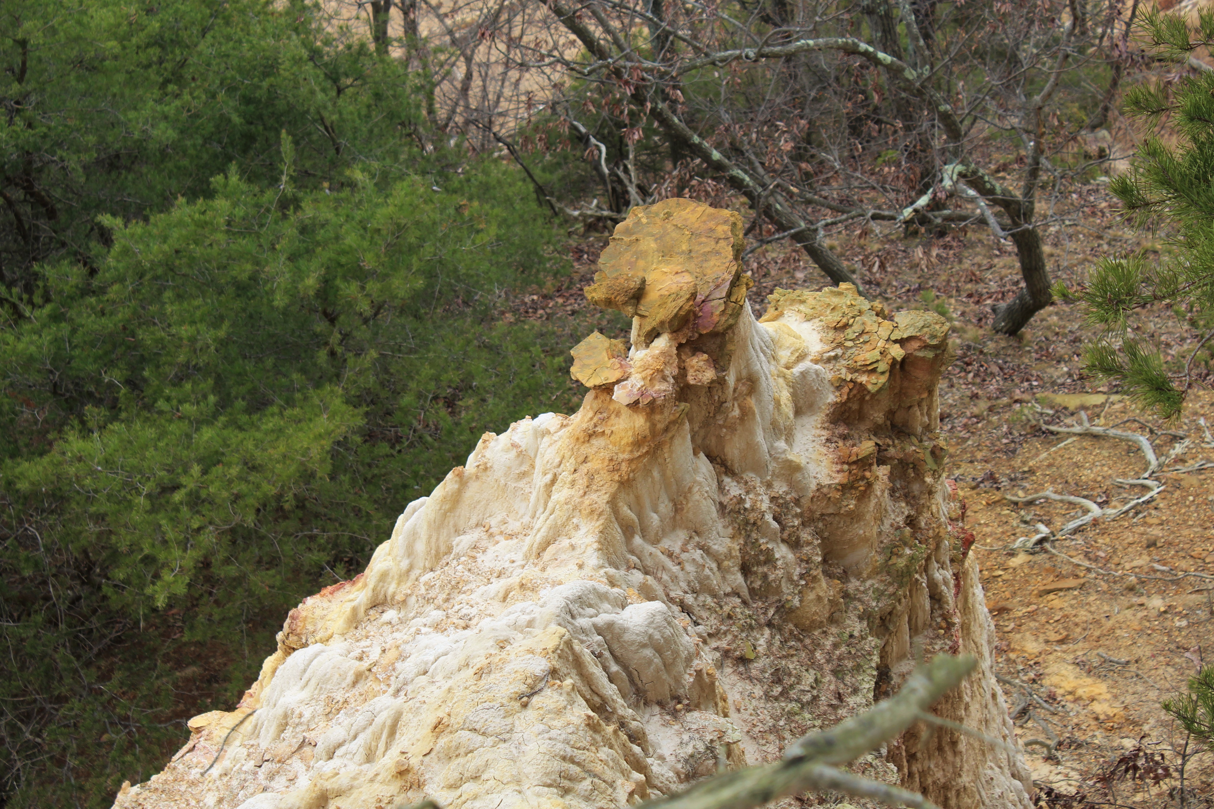 Above: Badlands formations on the edge of the White Banks trail, including what I suspect is the only honest to goodness hoodoo in Cecil County Maryland (on the lower right).