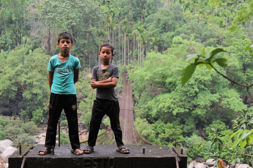But things usually fall into place. Once a line of communication is established, it’s possible to obtain the Rangbahshnong’s permission to stay and to explain my work vis-à-vis living root bridges. You might say that this is to put myself completely at the mercy of a whole village’s worth of strangers, far out in the middle of the jungle. To this, all I can say is: sometimes that’s what it takes. But my experience of going from village to village has been one of incredible, almost embarrassing, hospitality. I just hope I’m a good enough guest to make it worthwhile for the villagers. I do try to entertain the kids.