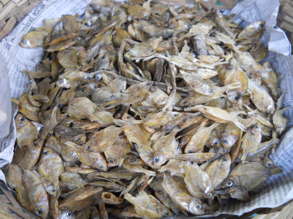 In the villages, meat is generally something of a luxury. The Khasi diet is often described as being ‘Southeast Asian,’ which is short form for saying that they’ll eat just about anything. But that doesn’t mean Khasis are eating just about anything all the time. Outside cities, the meat one is most likely to get comes dried and in small quantities. Chunks of preserved beef are often the only protein in a meal. I’ve carried strips of it myself. It’s not exactly fancy, but it keeps body and soul together. Dried fish, either from Bihar or Bangladesh, are another important source of protein. You eat the things whole, heads and all. I’ve always found them rather tasteless, but not hard to get down when calories are wanting. Pork seems to be the favorite meat in Riwar. The fatty parts are especially prized, and sometimes during feasts I’ve found myself more or less chugging lard. It’s an honor of sorts, though I tend to feel less than energetic the next day.