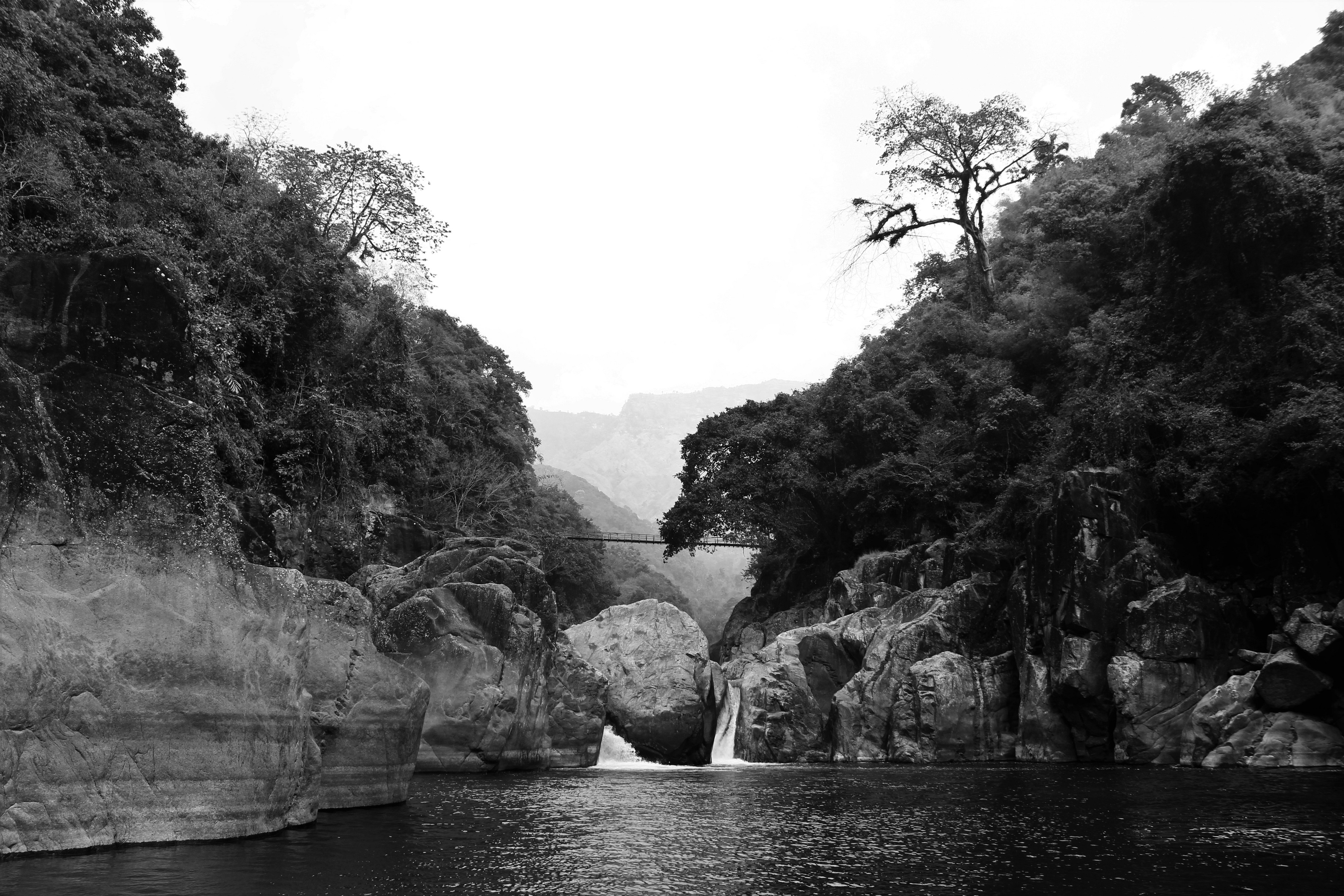 This is a view from downstream of the famous steel bridge at Shnongpdeng Village. It was built to replace an earlier structure which had been situated too close to the river and so was destroyed during a monsoon flood. This is sort of the classic Shnongpdeng image. The Umngot is famous for being both crystal clear and full of fish. Next to Shnongpdeng, there is a long stretch of deep, yet uncharacteristically calm, open water. This has led to the village developing a sort of riverine culture, which is quite unusual in the Khasi Hills. The image above was taken from the middle of the bridge. As I’ve found over the years, the river is vastly deeper than it looks from above. I’d estimate that those folks are in at least five or six feet of water. Boating on the Umngot under the Shnongpdeng suspension bridge. A bridge over the Umsong River, a major tributary of the Umngot. This is along a faint trail between the villages of Nongkwai and Wahlakhiat. My recollection is that the Umsong was, if anything, more crystalline than the Umngot. It was so transparent that fish appeared to be floating above the rocks on the riverbed (sadly, photos just don’t do it justice…at least the ones I had time to take at the midpoint of a brutal canyon trek). I fear that the bridge was in poor condition. This is a bridge over an exceedingly obscure tributary of the Umngot named the Umsi. To my knowledge, this route had never been crossed by a trekker. I don’t rule out the possibility, but the locals were of the opinion that none had come this way before. It’s not hard to see why. The trails in the area are faint and confusing. I got lost in the jungle on the other side on my way up to a village named Mawsna. Long story. As I was trekking in the valley of the Umsi River and through villages on either side, I was told that there was once a living root bridge that spanned the stream. This was reported to have been destroyed in a storm some time ago. My sources varied somewhat on the details, but there seemed to be agreement that the bridge had not existed as of the mid-90s. I was never able to ascertain where exactly the bridge had been located. However, the spot above, at roughly the same location as the steel footbridge, seems a distinct possibility. The tree in the center of the photo is a ficus, and these are generally (though not 100% of the time) only found in the Khasi Hills when they have been planted. It seems logical that the bridge meant to replace the living structure would be situated at roughly the same place. That said, my sojourn in the area was far too brief to find out for certain if this was true or not…It’s still a lovely tree though. This is a rather decrepit bridge over the Rishi River, another tributary of the Umngot, just below a village named Nonghulew. The bridge was in such poor condition when I came across it in 2019 that the locals preferred hopping across the stones of the river to walking over the span. In the monsoon season, of course, this is no longer a possibility. However, it’s unlikely that this bridge, rotting as it is, will see many more monsoons. And, finally, the canyon of the Umngot proper, as spanned by yet another steel suspension bridge. It took quite a bit of rough hiking to get from the bridge down to the huge pool in the foreground…and it was more than worth it. Over the Umngot.
