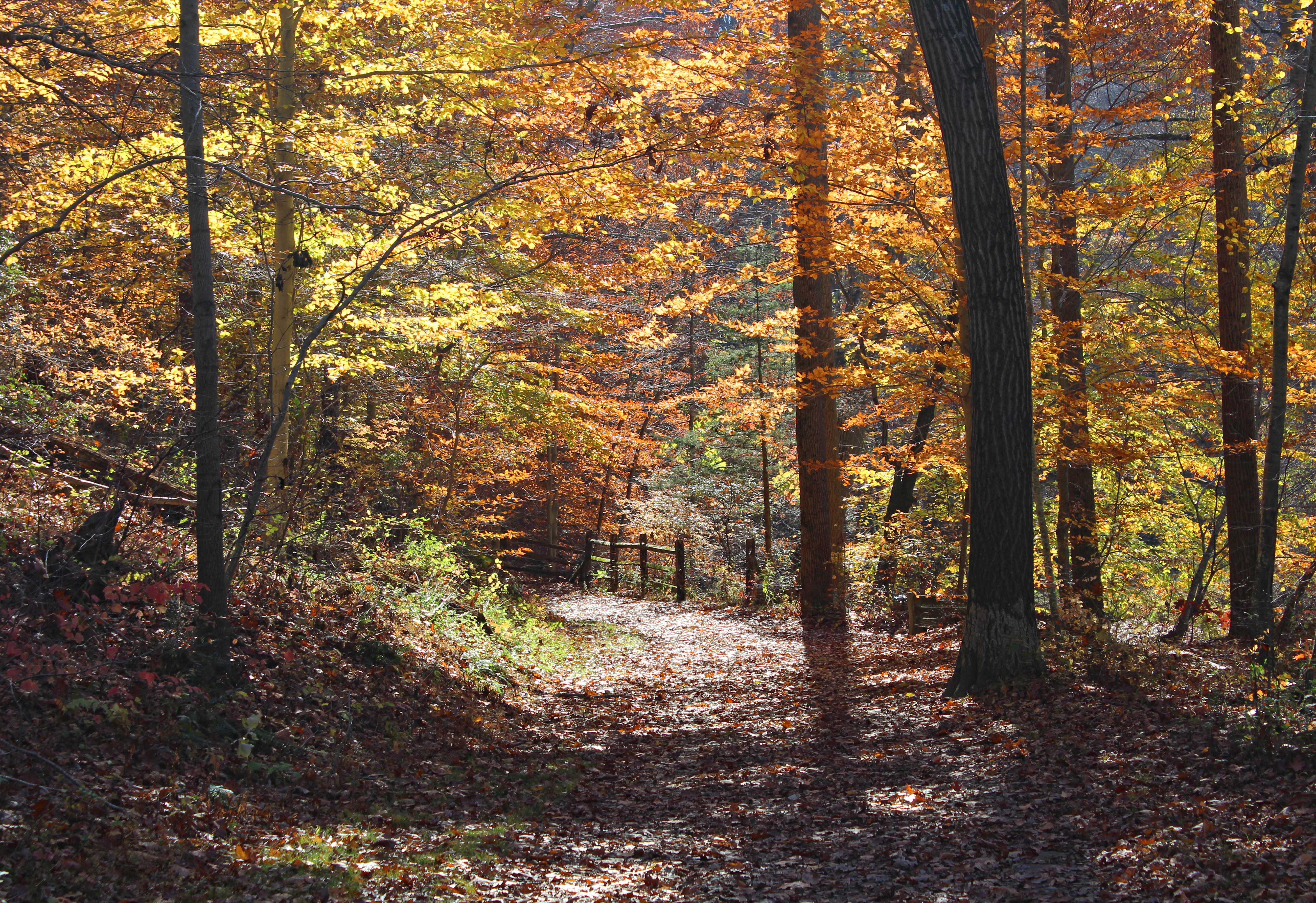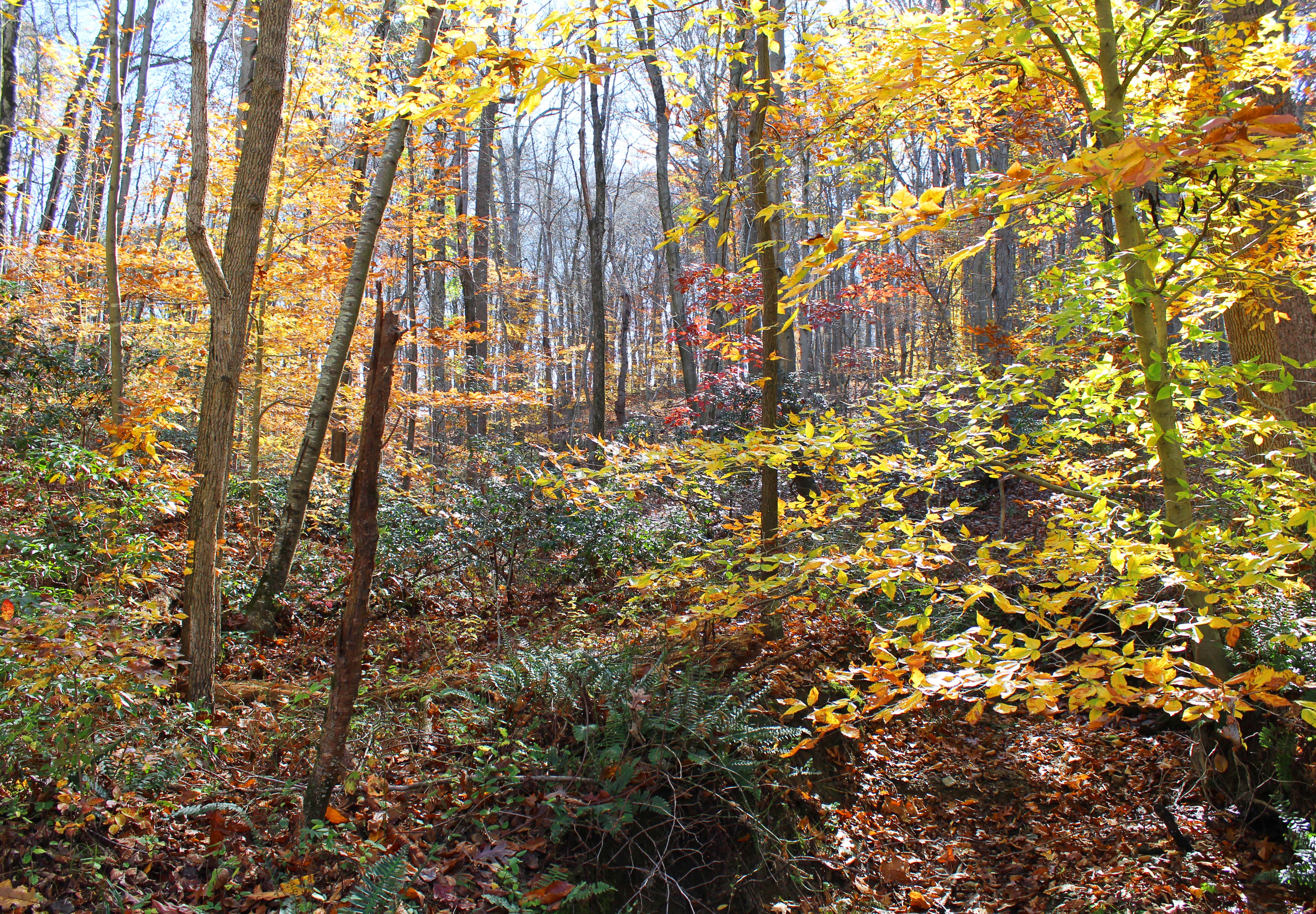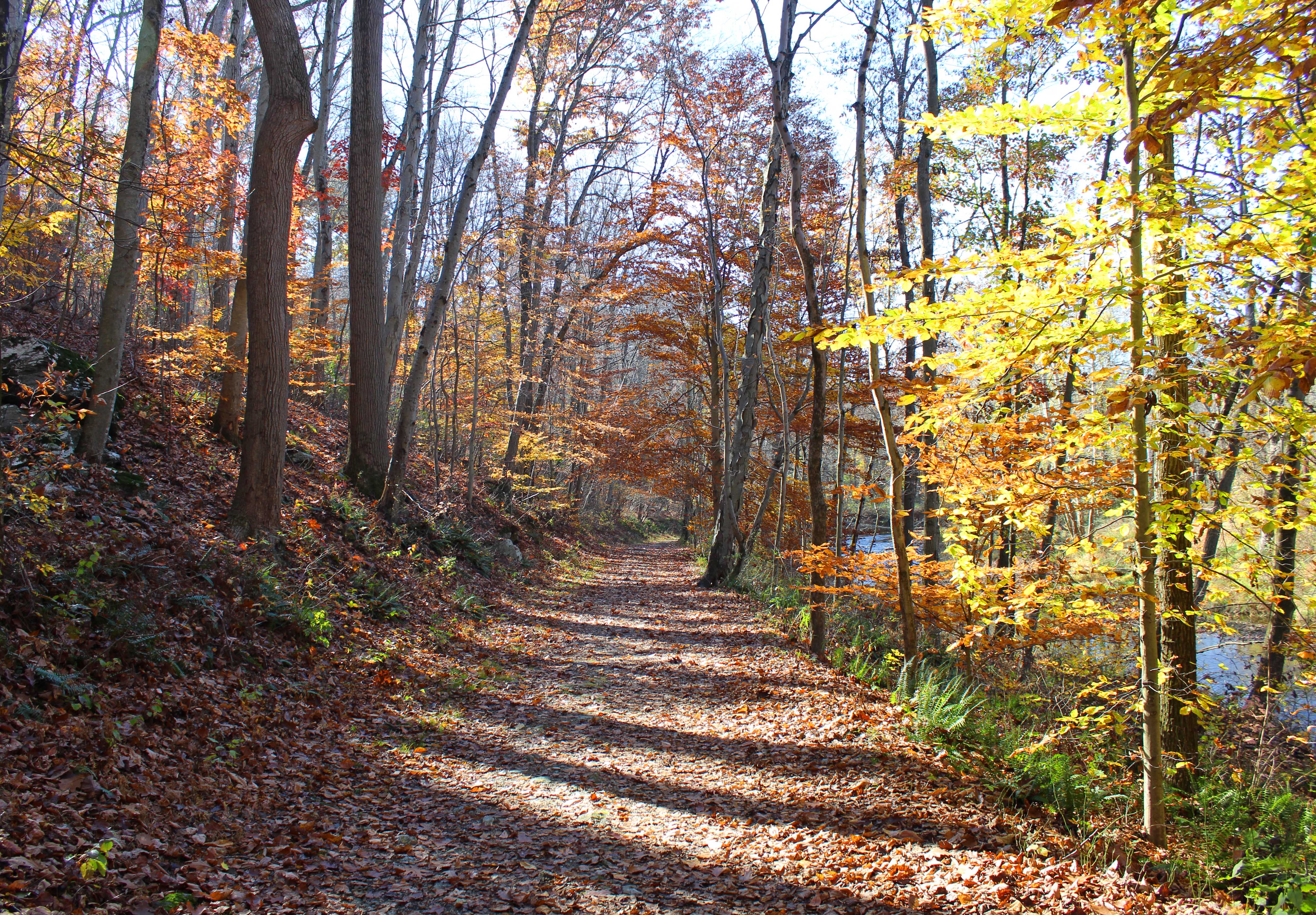 These photos are from a short walk I took down the Springlawn Trail in November 2022, on a warm day fairly late in the fall foliage season. A week later and most of the leaves were off the trees.