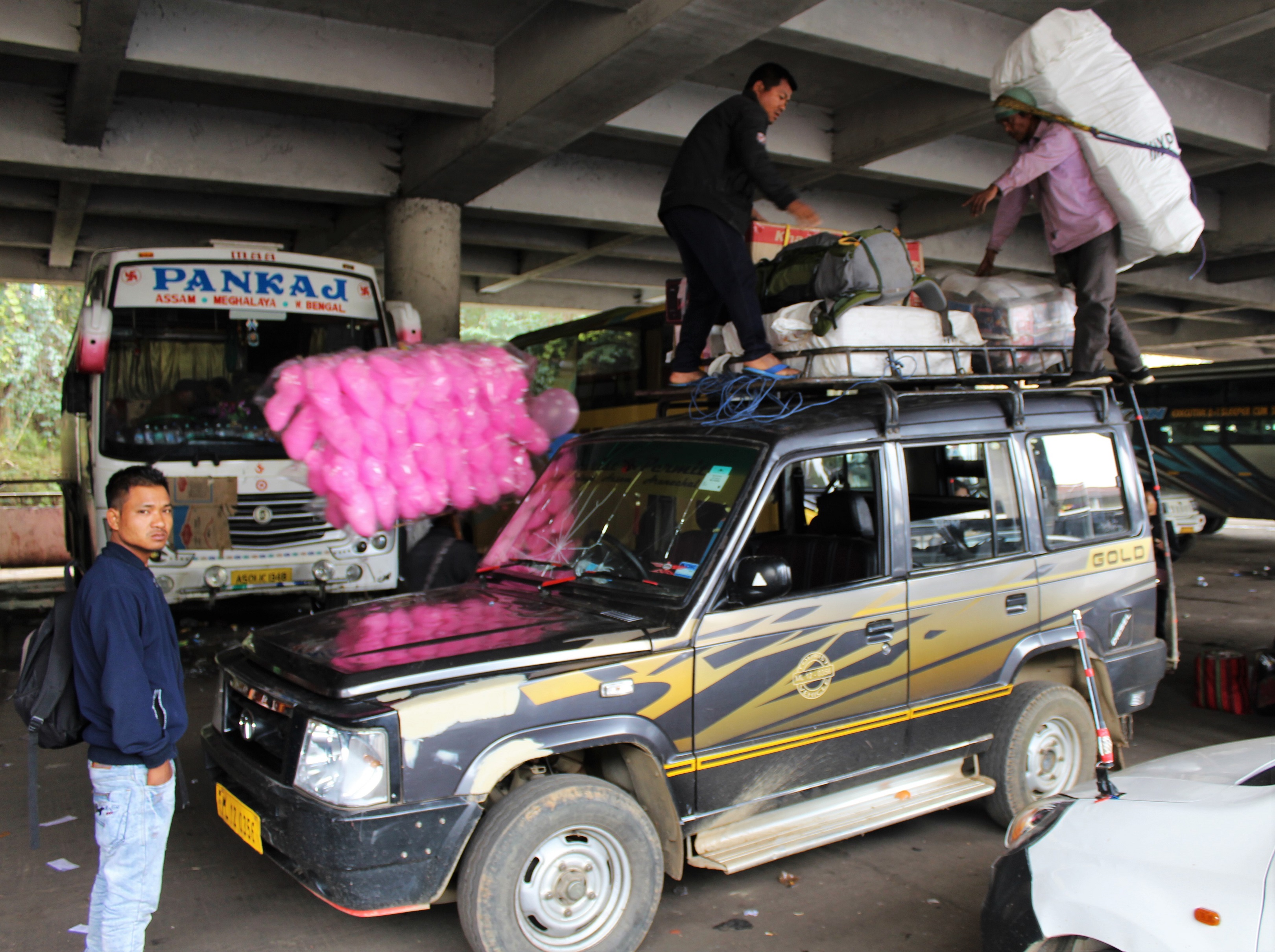 The Sumo climbed a dark ramp to the first floor of the parking structure, and then the driver maneuvered it up behind several Sohra-bound vehicles. Judging by the ant-like activity happening all-around them, the Sumos up ahead would soon be sufficiently dense with passengers to be deemed fit for departure. At this point my driver would move forward and collect his own horde of riders.