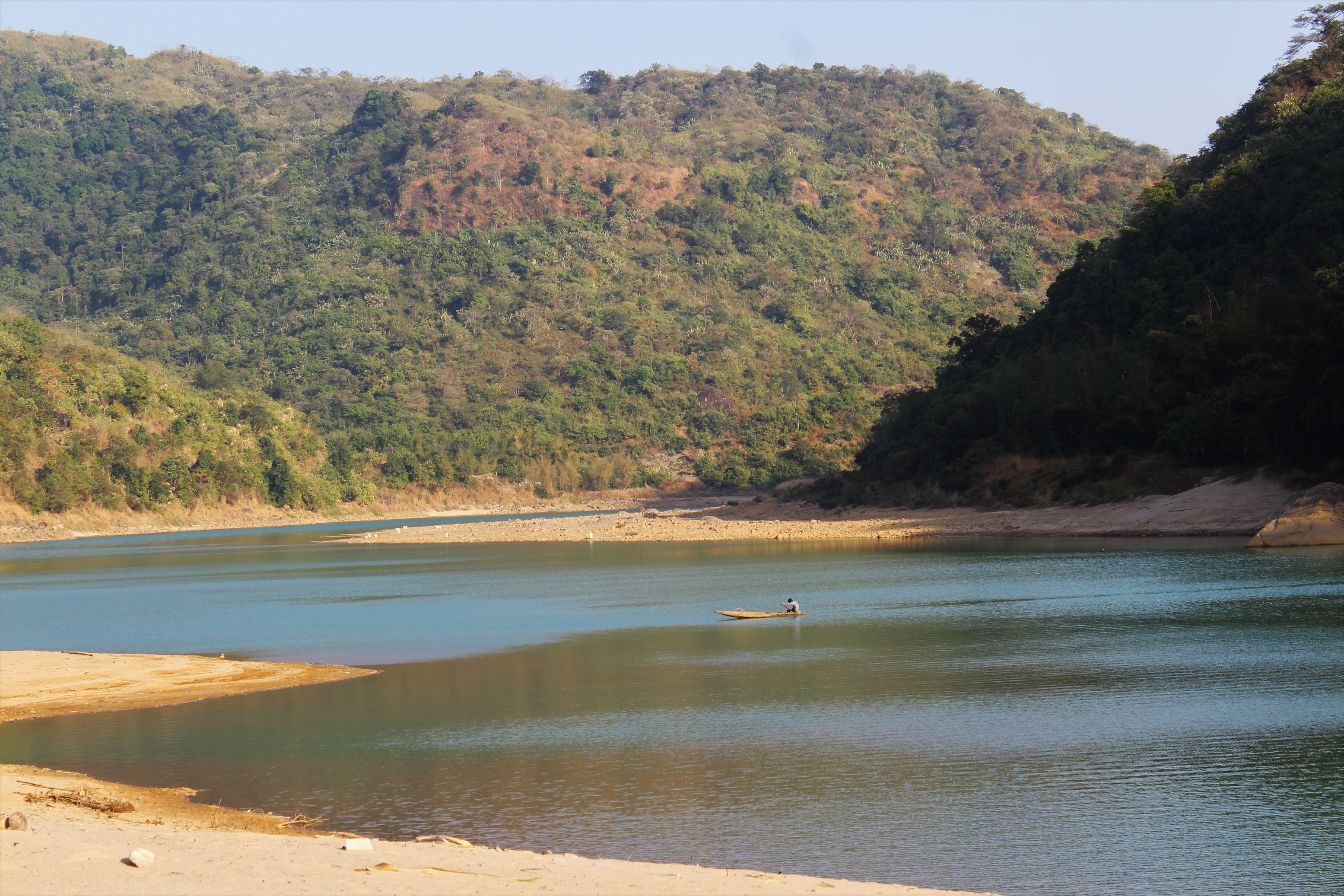 The Ranikor River is said to be a major tourist attraction, but at the time, the afternoon of a gorgeous Sunday at the height of the tourist season, there was not a day tripper in sight. The only company we had was a single local boat over by the opposite bank, and the man sitting in it didn’t seem to be catching anything. He was more interested in watching what this Hajong was doing with a Phareng than in his fishing rod. The entire time we were out there, the man kept his boat completely stationary while he silently stared at us.