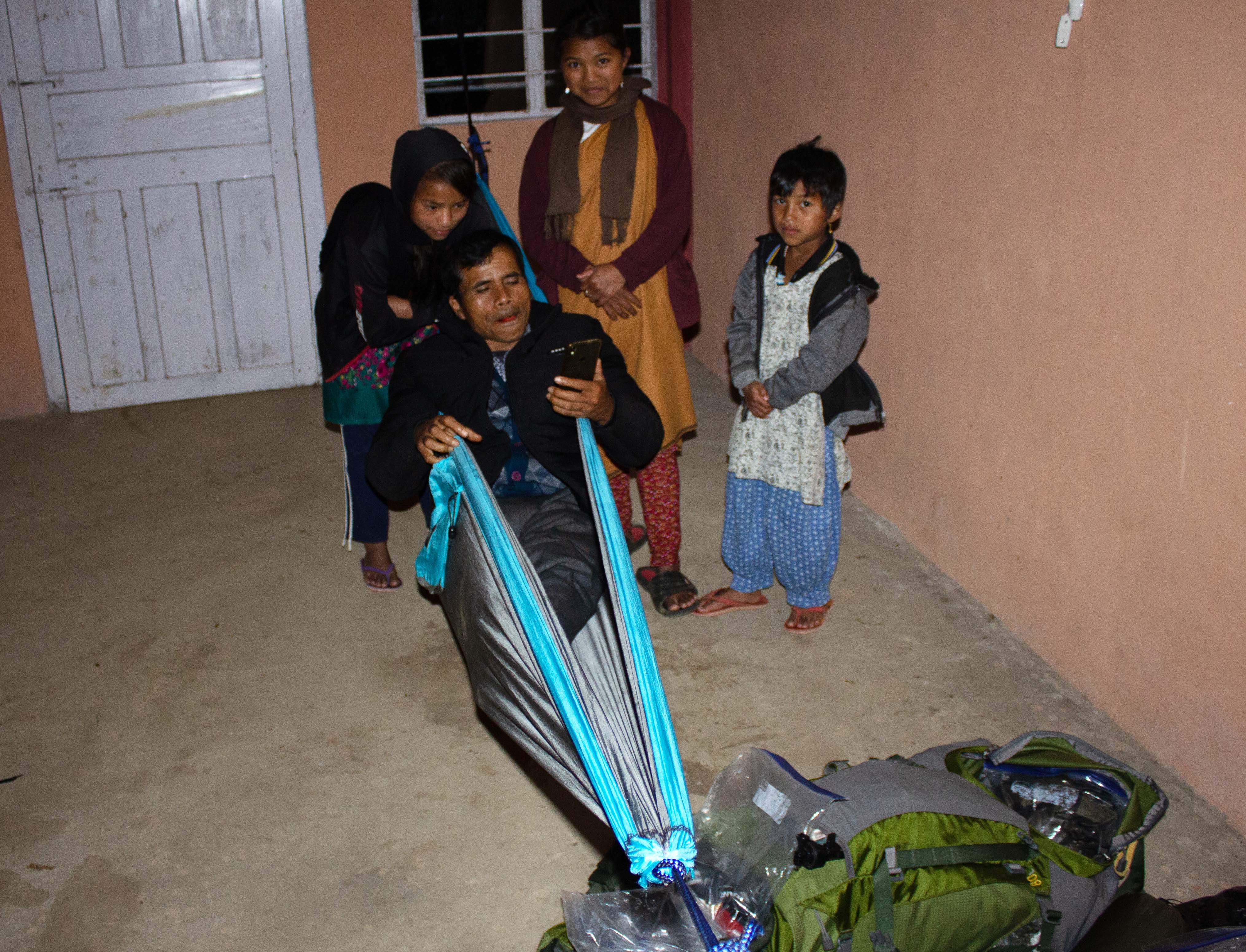 “Yes, in America, they have this Hammock.” The headman then scanned the Nylon with his smartphone camera. “You see, the American is very clever, and good at invention. We Khasis, we only sleep on the floor, or in a bed, but the American sleeps above the floor and in the trees where no one can bother him. It is a fascinating way to sleep. Yes, thank you my good friend Patrick. May God bless and protect you.”