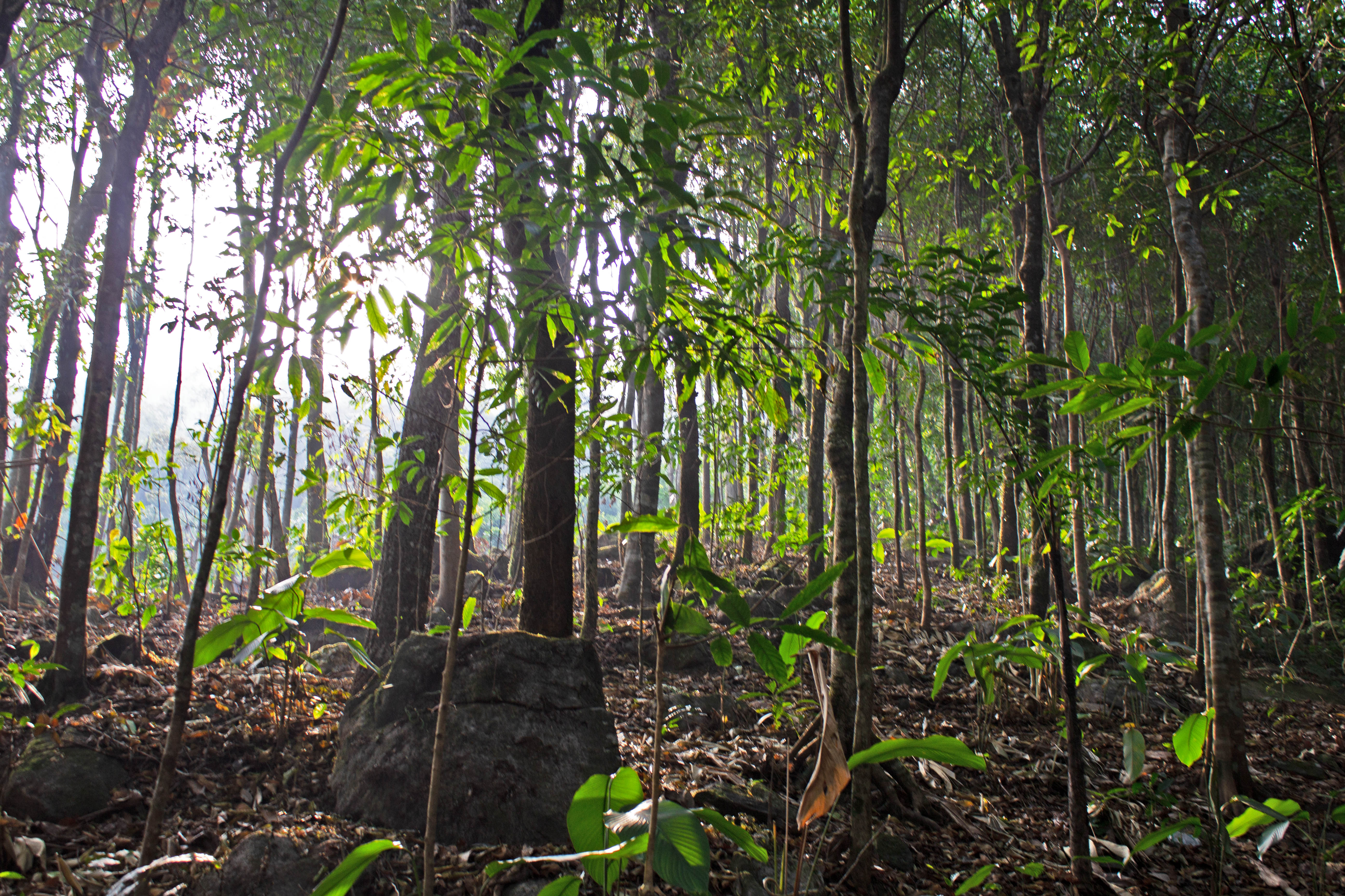 Most of the underbrush in the cleared area had been removed, as had a significant number of the trees, the fallen trunks of which littered the ground. Still, many trees remained standing, though these had mostly had their lower branches removed, leaving their trunks exposed to the long betel leaf vines that wound around them and climbed tens of meters up towards their much-reduced canopies. Khasis use several kinds of trees for this sort of agriculture, though the most commonly employed are Jackfruit, which have the advantage of being useful not only as straight pillars around which the leaves can grow, but also for their fruit, which can be made into a wide variety of preparations, and their wood, which is known to be exceptionally hard, moisture resistant, and termite proof.