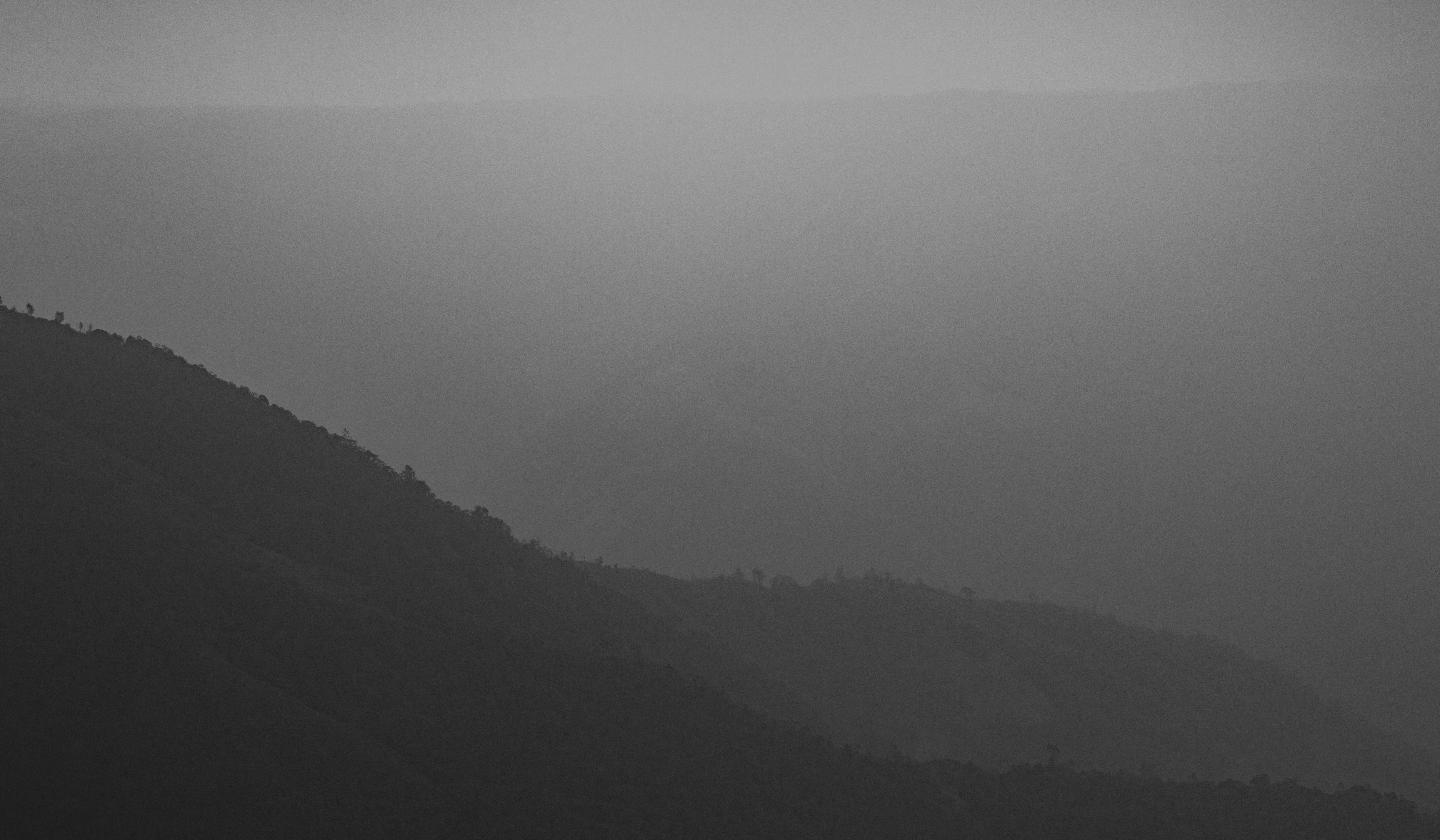 That canyon was now both ahead of me and off to my right. The course of the Umngot in this part of Meghalaya makes a sudden curve to the west as it heads down from the high country, the bend in the river creating a huge promontory that juts out of the limestone tableland and falls precipitously to the southeast. But the air that day was too laden with mist for me to see much more of the canyon ahead than a great grey wall of murk. Though I knew, intellectually, that Jarain was only around half a dozen kilometers away as the crow flies, the sight of the infinitely deep mist-filled canyon made me feel as far from the end of the trek as when I was making my first few tentative steps uphill from Ranikor.