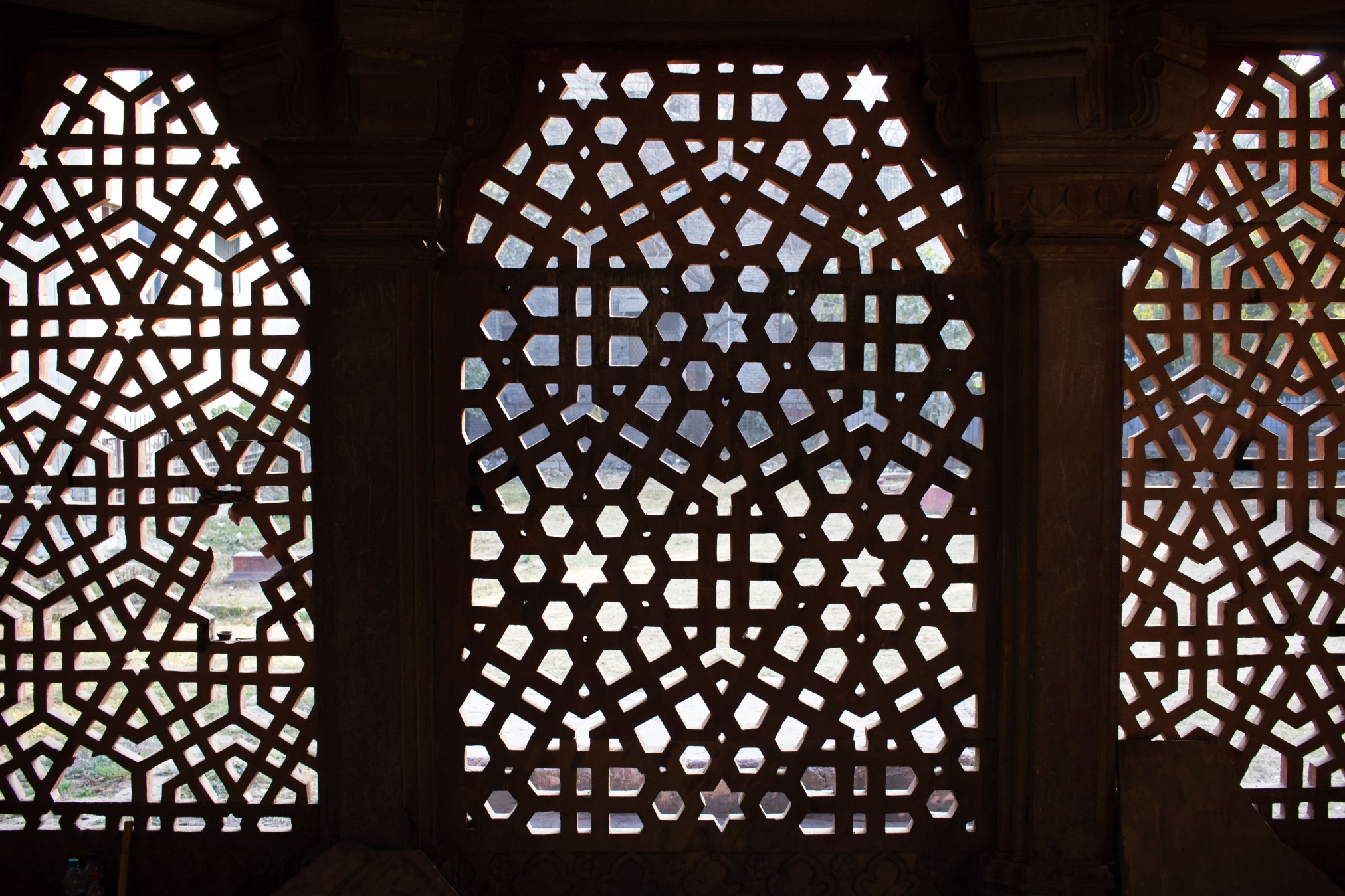 The tomb comes from an interesting transitional period in Delhi’s history. The nearby monuments where Yusuf Qattal did his spiritual work, striking Khirki Masjid and a large dam called Satpula, or Seven Bridges, were both over 150 years old at the time, and were probably already seen as remnants of a very different era. They were built by the third dynasty of the Delhi Sultanate, the Tughlaqs, a line of Turkic rulers who briefly controlled most of the subcontinent. Their surviving buildings, even their mosques and tombs, tend to be rather unornamental and militaristic in appearance, perhaps reflecting both the unsettled condition of North India at the time as well as the dynasty’s origin as Central Asian conquerors.