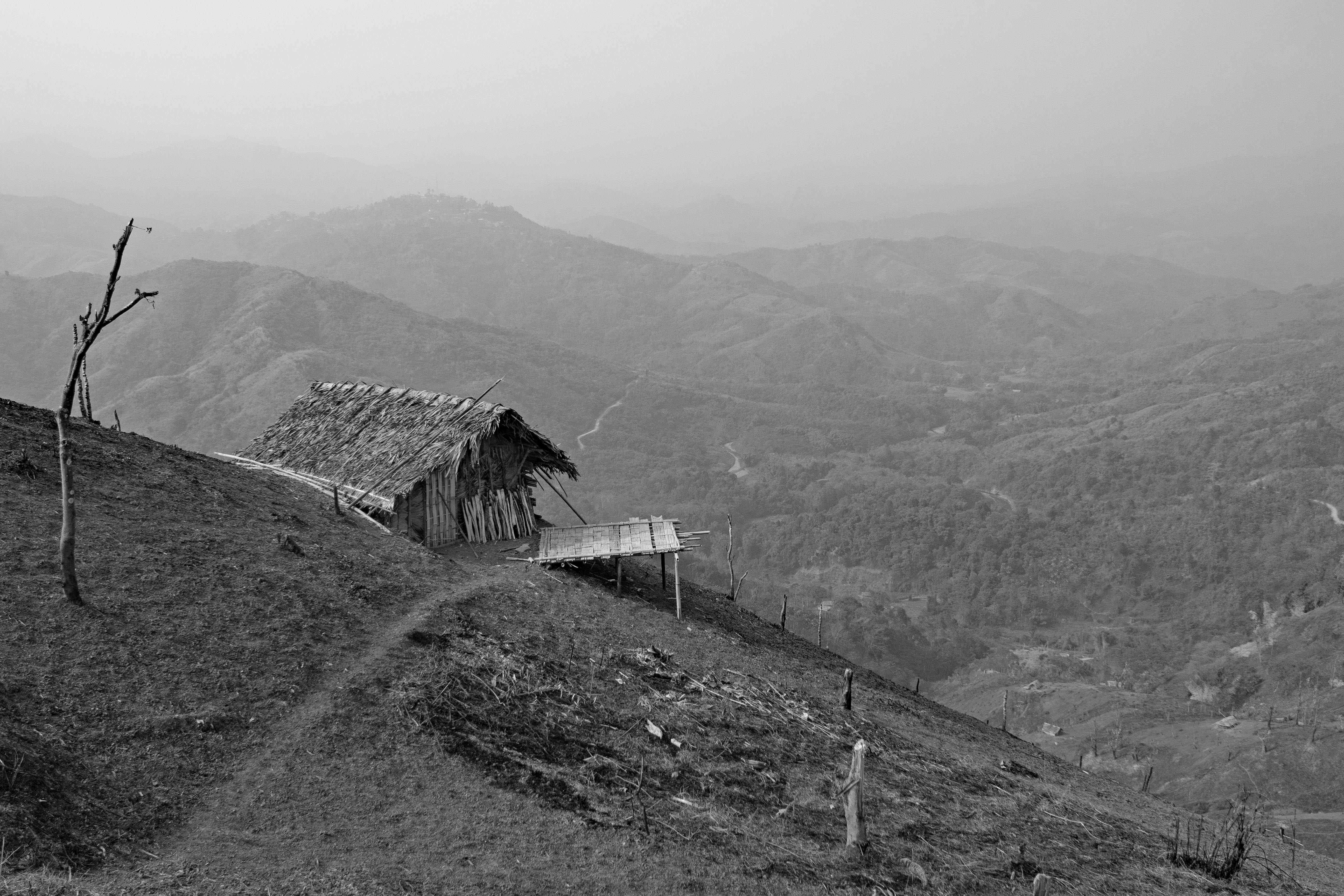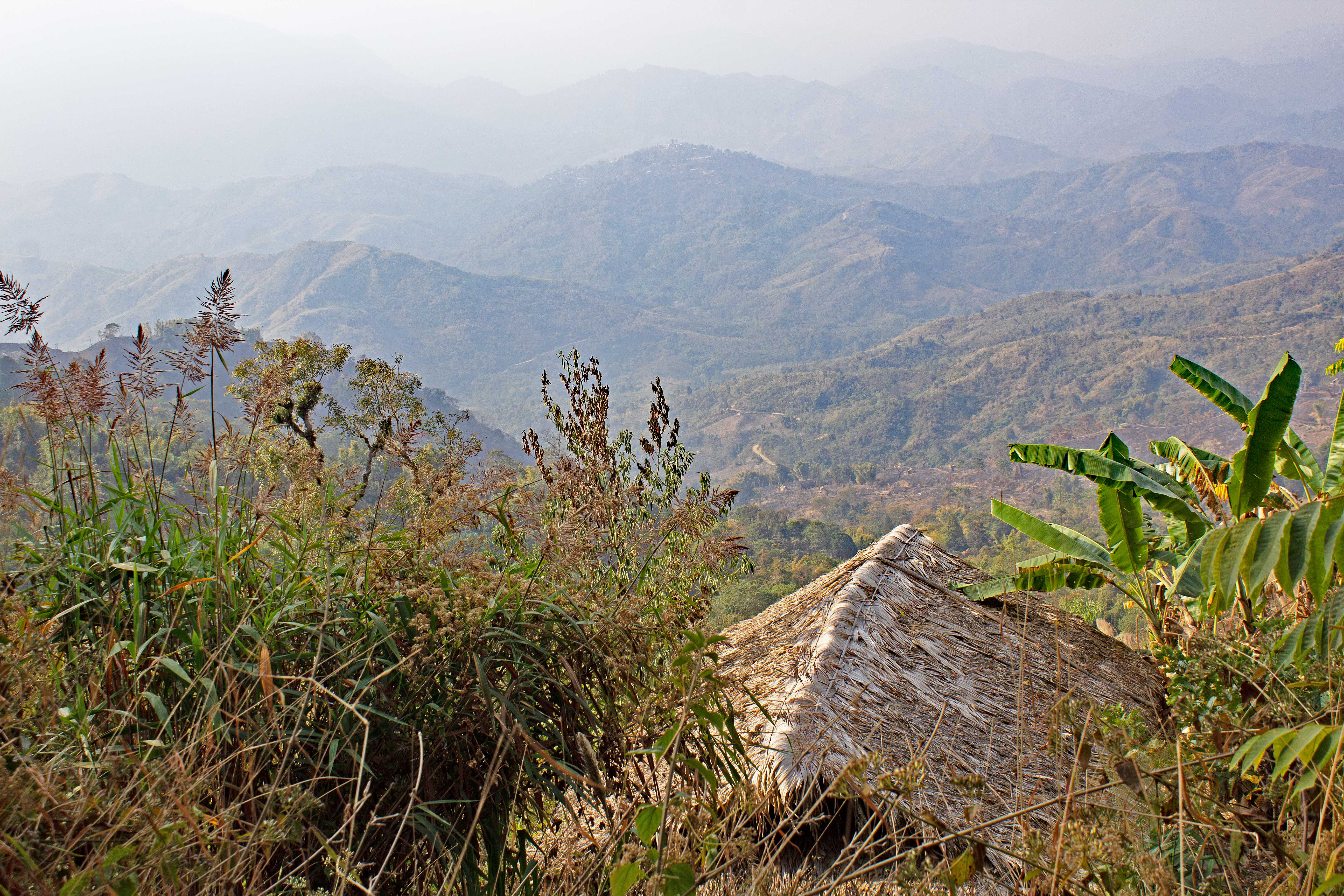 Looking out over a traditional-style agricultural work hut close to the road to Longzang village. You might be able to tell that I used Photoshop’s haze reduction tool in this photo. During the winter, all of Northeast India tends to be enshrouded in a layer of smoky haze, which is mostly a result of agricultural practices. Since there’s little rain during this time, it’s the best part of the year to take long hikes, but not for landscape photography.