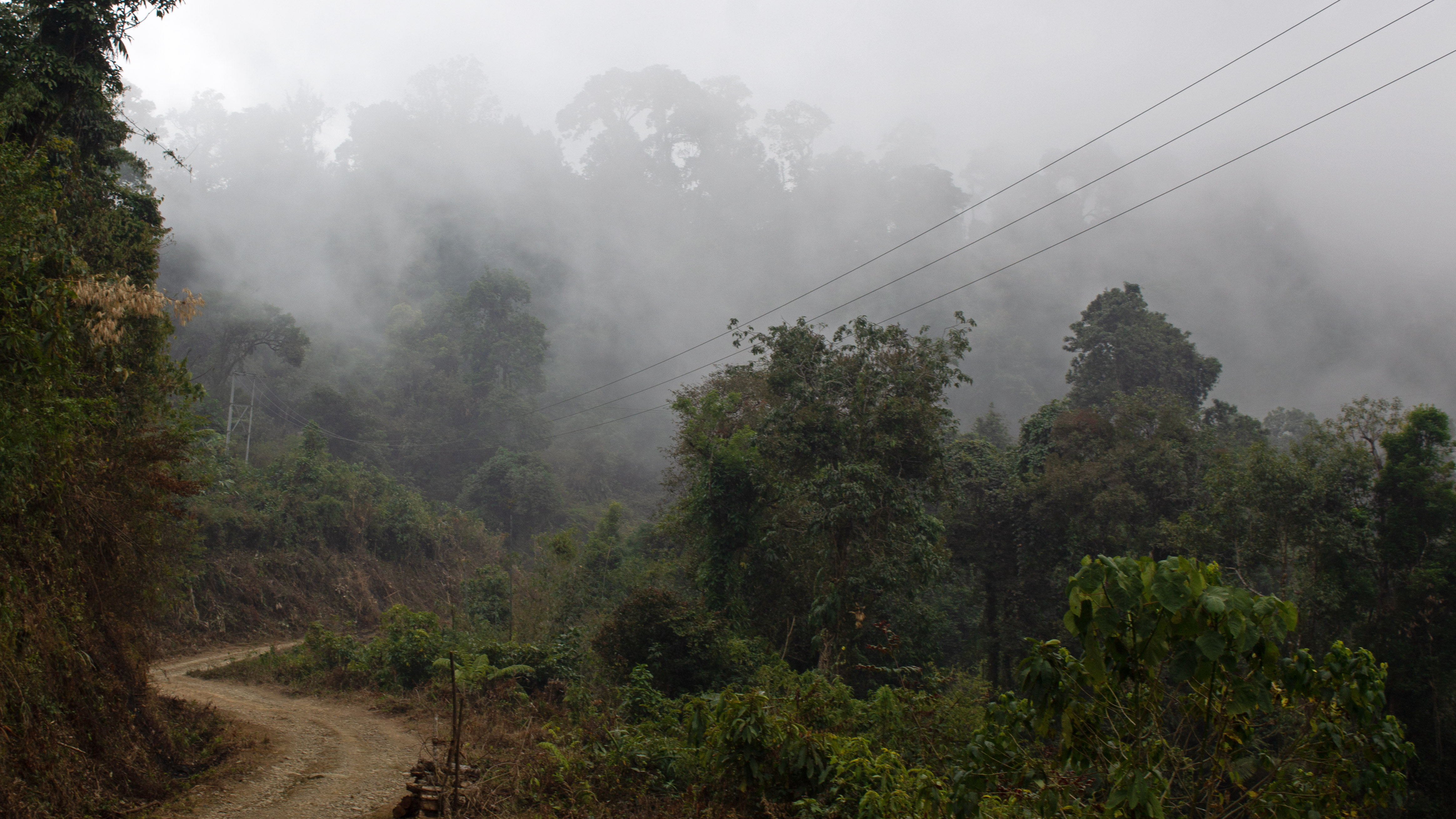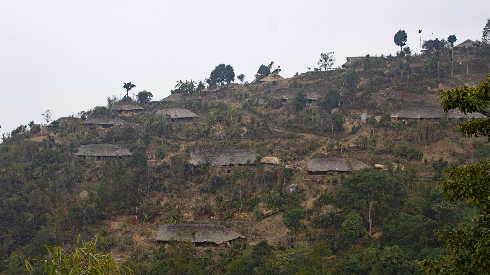 A view toward the ridges climbing up to Longwa and the border with Burma. This photo was taken as I walked from the village of Longzang to Longwa. It was sunny when I left Longzang, but as I climbed to Longwa I approached a layer of grey misty clouds that never really broke until I left Longwa a few days later. Longwa is situated along a saddle on a high ridge at an altitude of around 1500 meters. The ridge has some of the highest terrain in the vicinity, which means it has a distinct microclimate. For the four days I stayed there, Longwa was concealed in a demoralizing cold mist. Not the best of conditions for landscape photography.