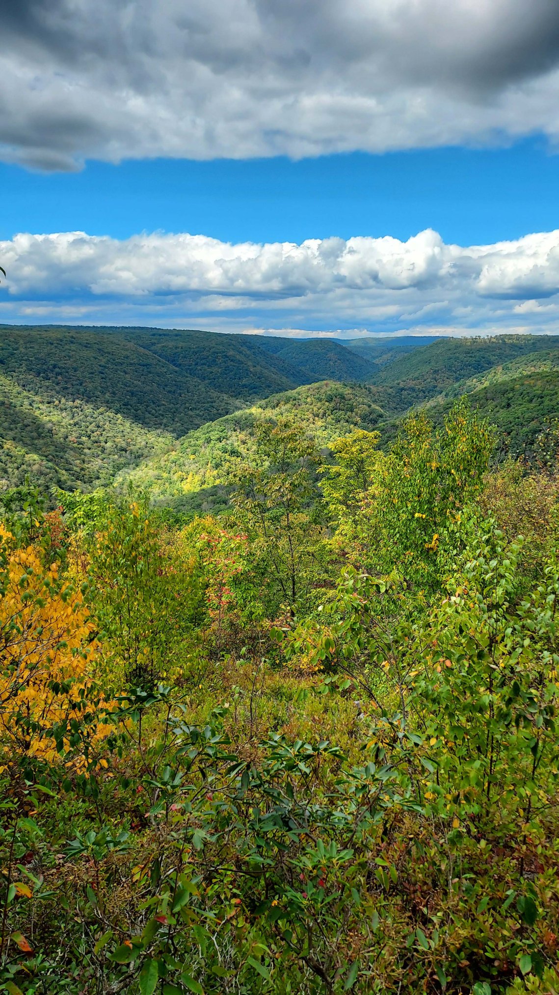 A view out over the Black Forest Trail on my first day of hiking, having climbed up from the parking area next to Pine Creek (that is famous for carving the “Grand Canyon of Pennsylvania,” which is beautiful, but nothing like the Grand Canyon of the Colorado Plateau, and rather suffers from an unnecessary comparison if you ask me…but I digress). Even though it was still summer back home, autumn was just beginning to arrive in Pennsylvania. I believe this is looking roughly west along the canyon of Slate Run.