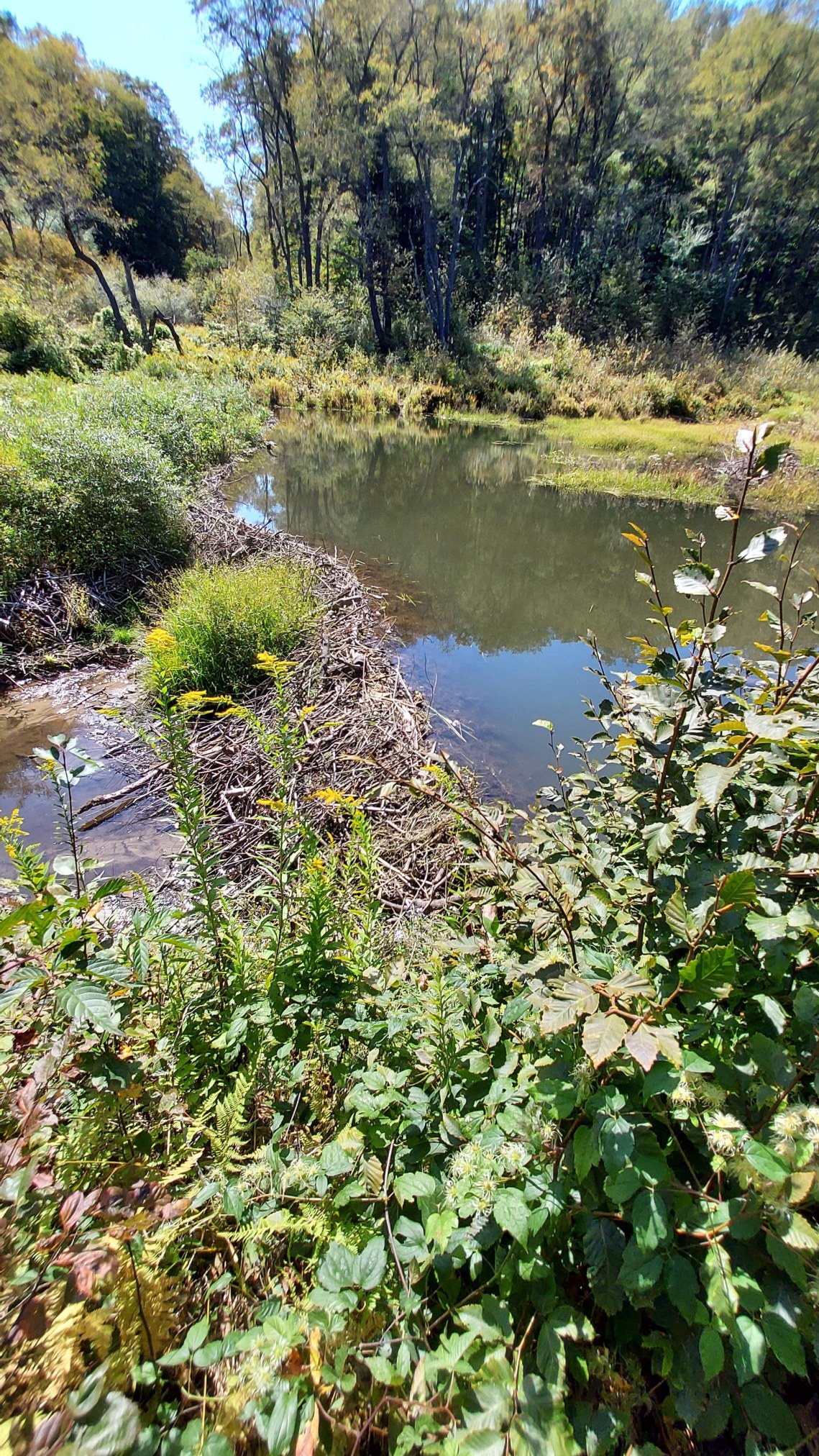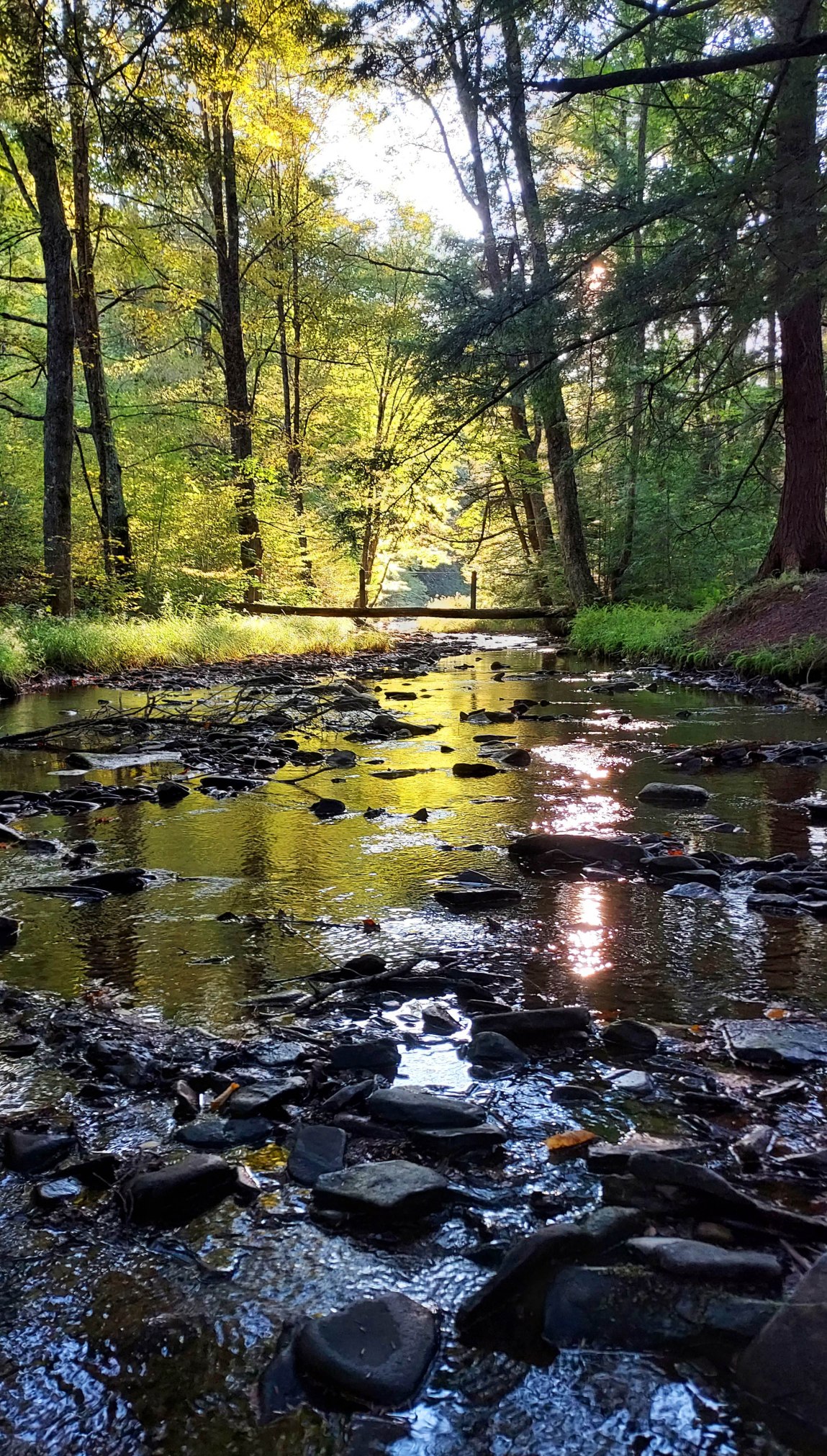 This is rather a difficult photography subject (especially when all you’ve got is a potato cellphone camera), but what you’re looking at here is a huge beaver dam across Lyman Run. There are several valleys along the Susquehannock trail where the beavers have been at it for generations. They construct dams across creeks, and then the lakes they create fill with silt, so the beavers move upstream. After a while, this begins to shape the whole landscape; the creeks become a succession of muddy terraces with beavers paddling around in them, slapping their tails at the occasional passing hiker.