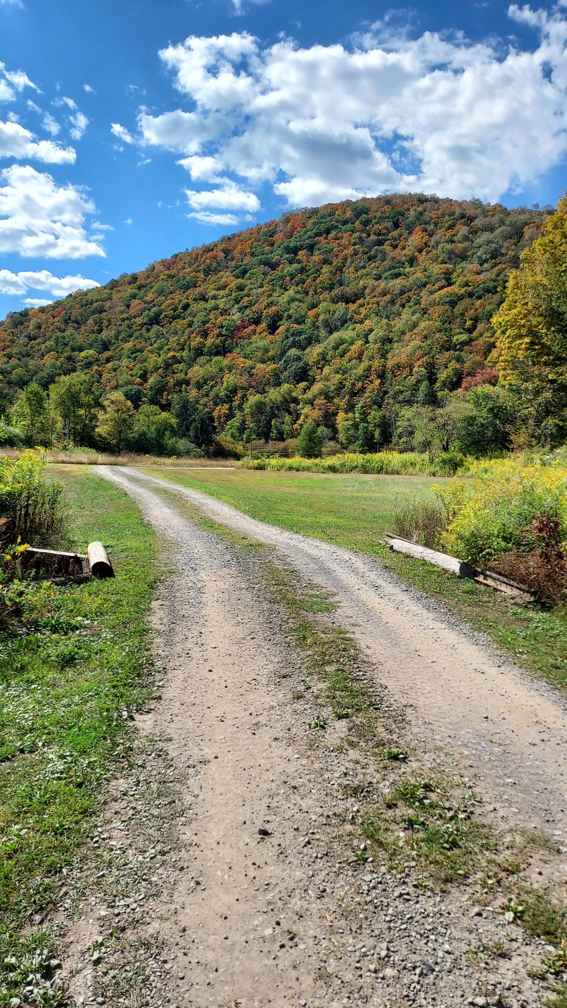 This is a stretch where the trail crosses through the valley of the East Fork of Sinnemahoning Creek, where there’s a very small community (a few barns and a couple of houses). It’s one of the few spots on the hike where you’re at the base of the mountains looking up and can actually see them. That came as a relief. There are long miles where the views consist mostly of the leaves smacking you in the face. Don’t get me wrong; that has its own charm, but it’s also nice to get a sense of the landscape.
